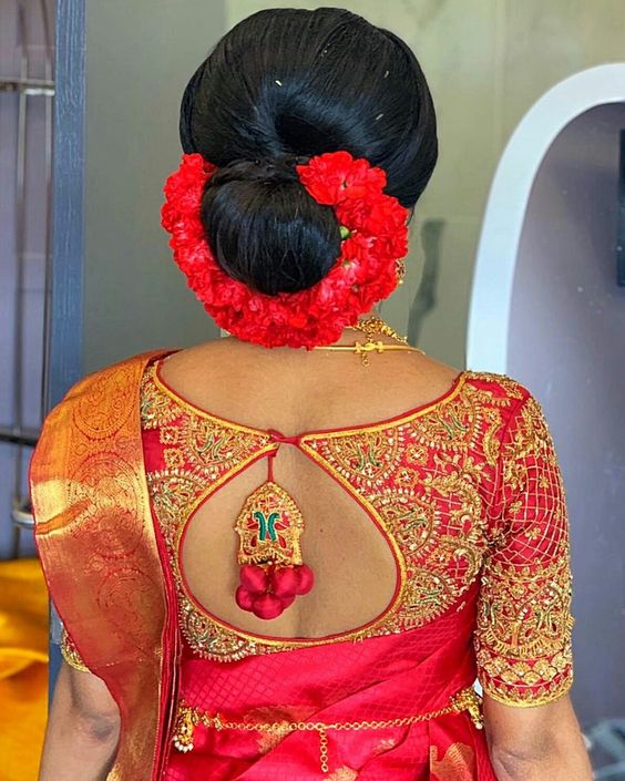 - Color / Design – Apple Red Color Thread and Gold Stone Work Design