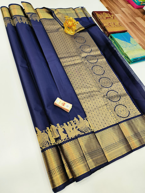 Traditional Design Pure Kanjivaram Fancy Silk Saree Ink Blue Color