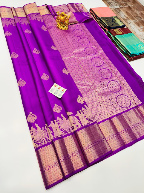 Traditional Design Pure Kanjivaram Fancy Silk Saree Purple Color w/ Blouse