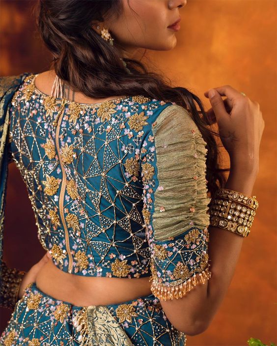 Specification: Traditional Embroidery and Patch Designer Blouse Sky Blue Color