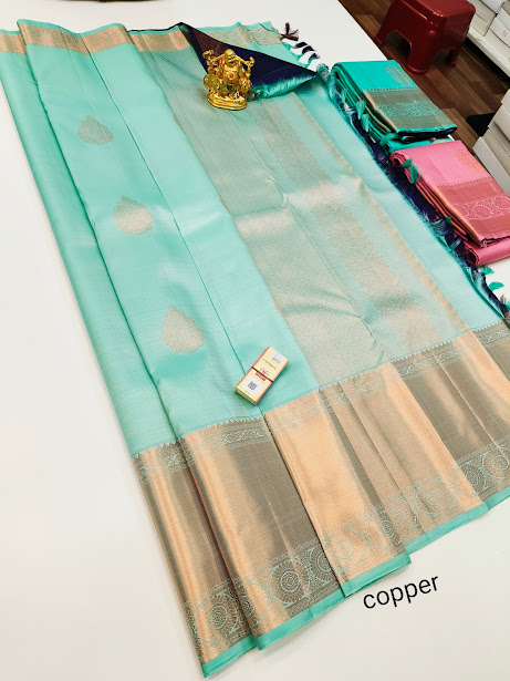 Trendy Color and Design Pure Kanjivaram Fancy Silk Saree Sky Blue Color w/ Blouse