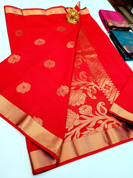Specification: Trendy Design Butta Mphoss Saree Chilli Red, Violet, Sky Blue Color w/ Blouse