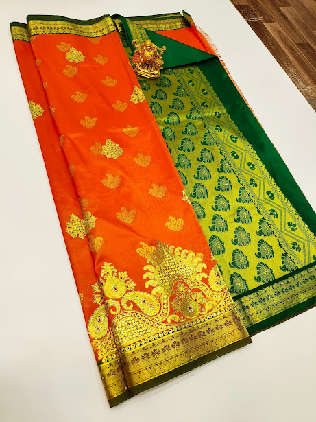 Trendy Design Butta Mphoss Saree Orange Color w/ Blouse