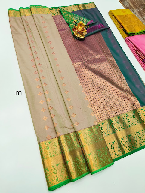 Trendy Design High Fancy Kanjivaram Silk Saree Mix Gray Color w/ Blouse