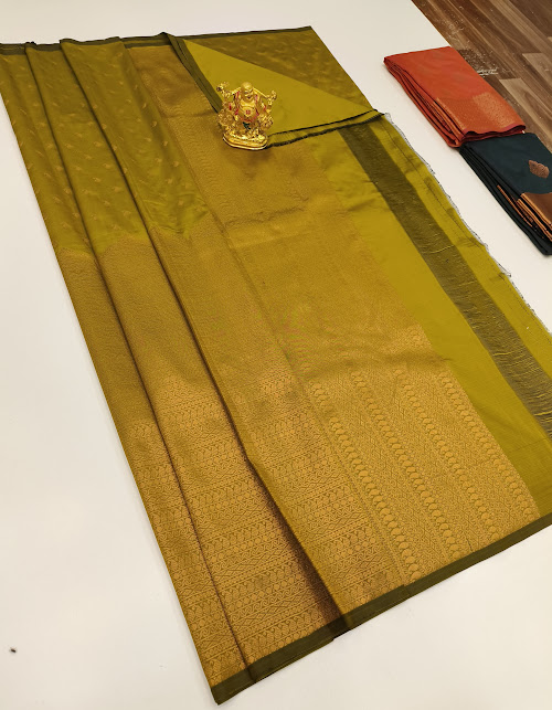 Trendy Design High Fancy Kanjivaram Silk Saree Mix Olive Green Color w/ Blouse