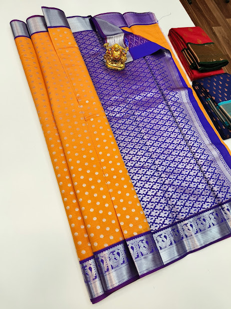 Trendy Design High Fancy Kanjivaram Silk Saree Mix Yellow Color w/ Blouse