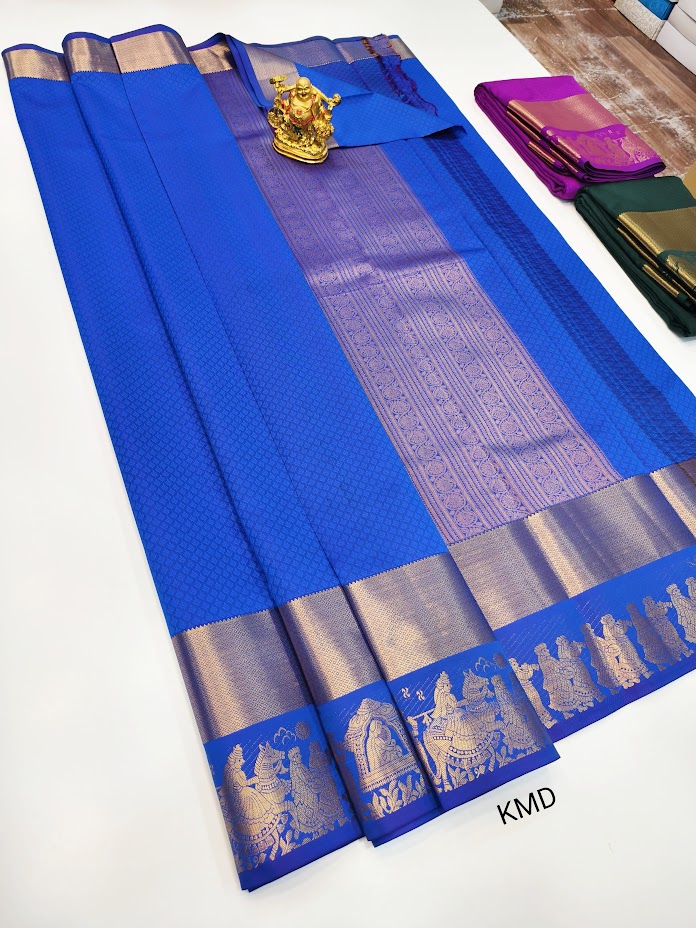 Trendy Design K.M.D Soft 75% Pure Silk Saree Blue Color w/ Blouse