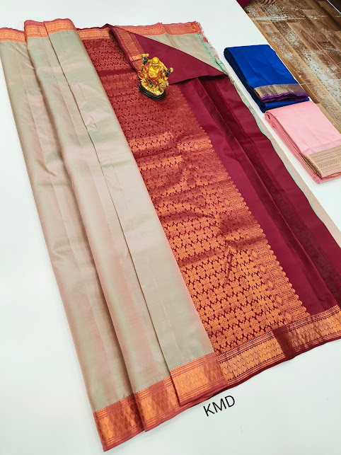 Trendy Design K.M.D Soft 75% Pure Silk Saree Cement Color w/ Blouse