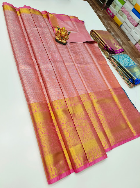 Trendy Design Kanchi Semi Silk Saree Peach Color w/ Blouse