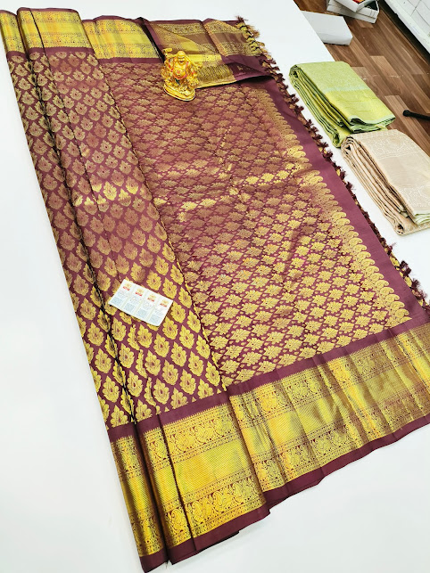 Trendy Design Kanjivaram Pure Wedding Bridal Silk Saree Brown Color w/ Blouse