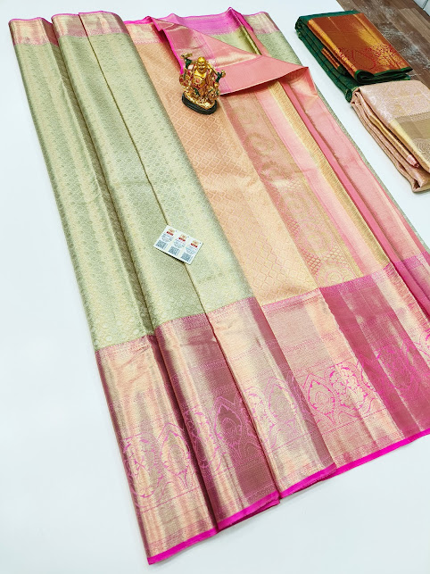 Trendy Design Kanjivaram Pure Wedding Silk Saree Pista Color w/ Blouse