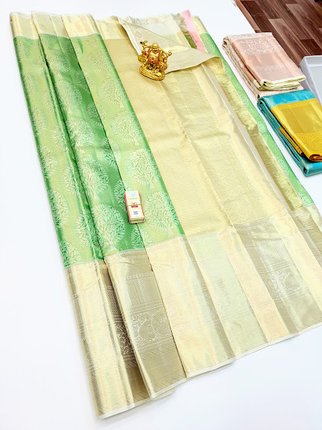 Trendy Design Kanjivaram Pure Wedding Silk Saree Pista Green Color w/ Blouse