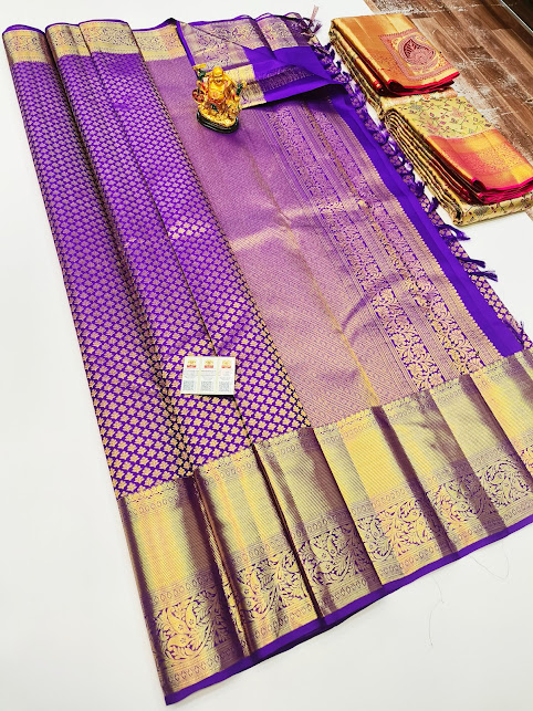 Trendy Design Kanjivaram Pure Wedding Silk Saree Purple Color w/ Blouse