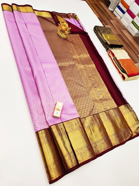 Trendy Design Kanjivaram Pure Wedding Silk Saree Rose Color w/ Blouse