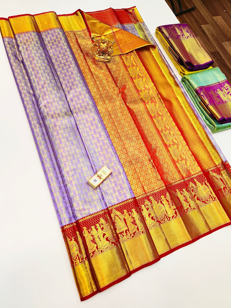 Trendy Design Kanjivaram Pure Wedding Silk Saree Violet Color w/ Blouse