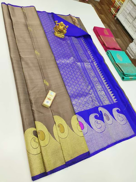 Trendy Design Pure Kanjivaram Fancy Silk Saree Cement Color w/ Blouse