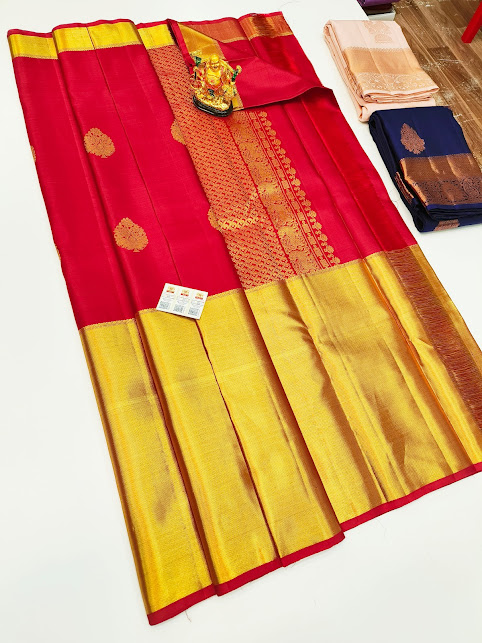 Trendy Design Pure Kanjivaram Fancy Silk Saree Chilli Red Color w/ Blouse