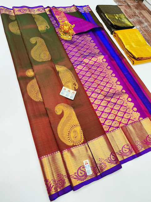 Trendy Design Pure Kanjivaram Fancy Silk Saree Double Shade Color w/ Blouse
