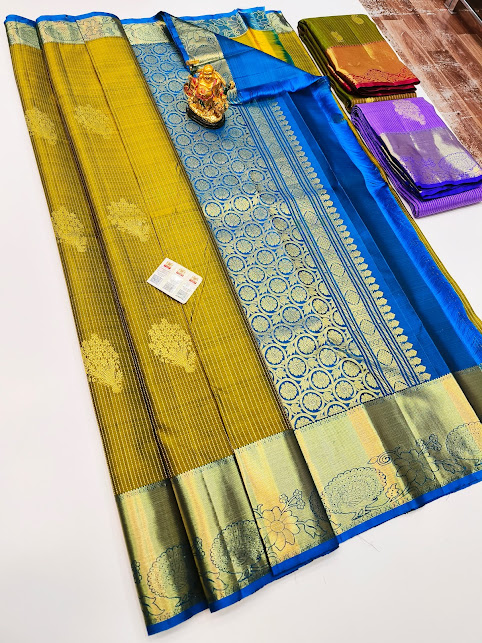 Trendy Design Pure Kanjivaram Fancy Silk Saree Olive Green Color w/ Blouse