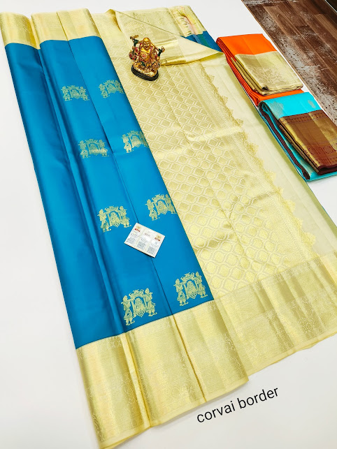 Trendy Design Pure Kanjivaram Fancy Silk Saree Sky Blue Color w/ Blouse