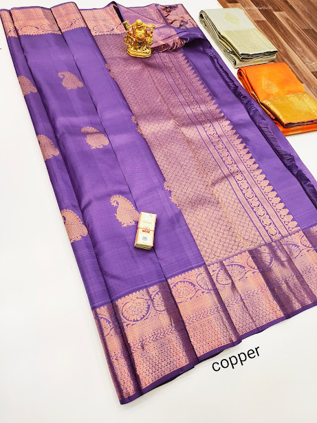 Trendy Design Pure Kanjivaram Fancy Silk Saree Violet Color w/ Blouse