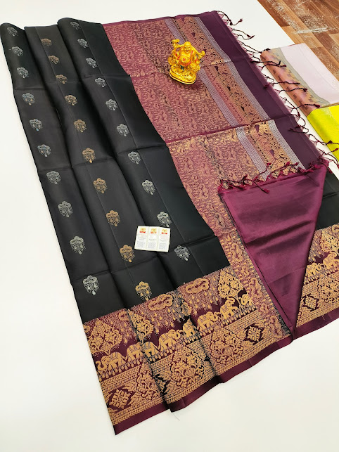 Trendy Design Pure Soft Silk Saree Black Color w/ Blouse