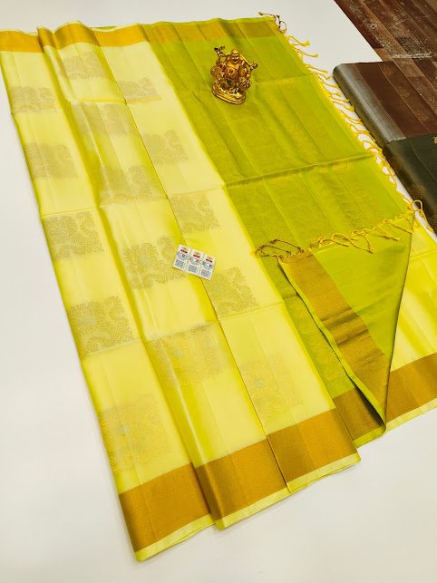 Trendy Design Pure Soft Silk Saree Lemon Yellow Color w/ Blouse