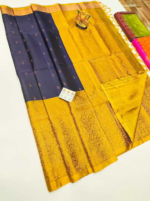 Trendy Design Pure Soft Silk Saree Navy Blue Color w/ Blouse