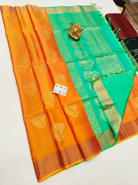 Trendy Design Pure Soft Silks Saree Fanta Orange Color w/ Blouse