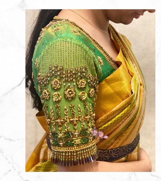 Specification: Trendy Gold Stone and Embroidery Bridal Blouses Green Color
