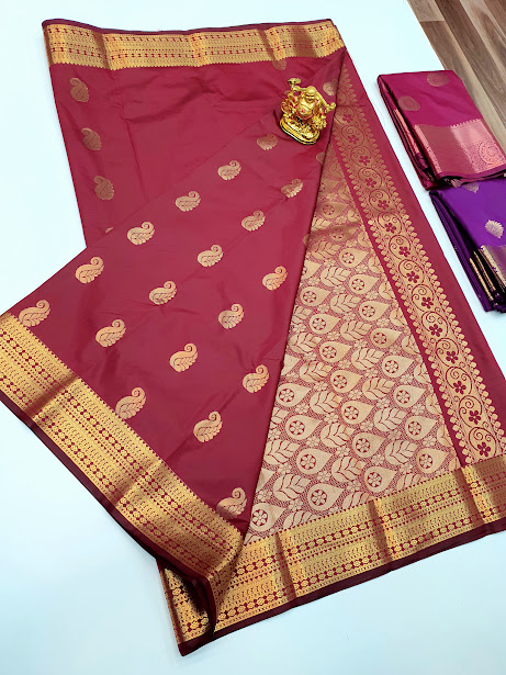 Trendy High Fancy Kanjivaram Silk Saree Mix Red Color w/ Blouse