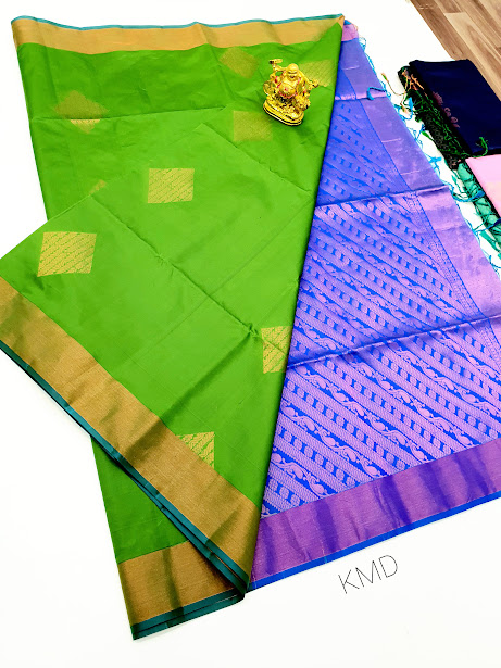 Trendy K.M.D Soft 75% Pure Silk Saree Parrot Green Color w/ Blouse