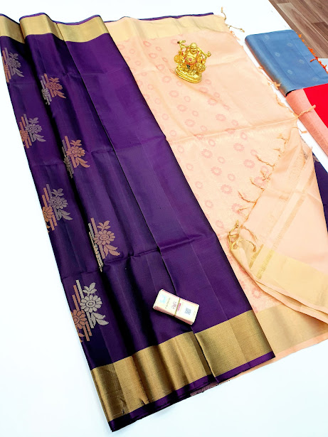 Trendy & Latest Design Pure Soft Silk Saree Dark Purple Color w/ Blouse
