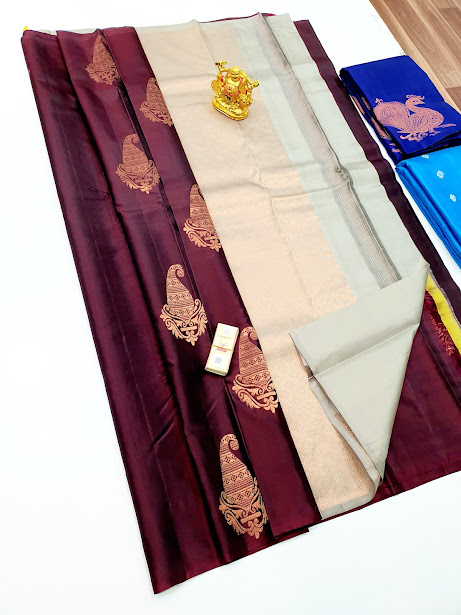 Trendy Mango Design Pure Soft Silks Saree Kumkum Red Color w/ Blouse