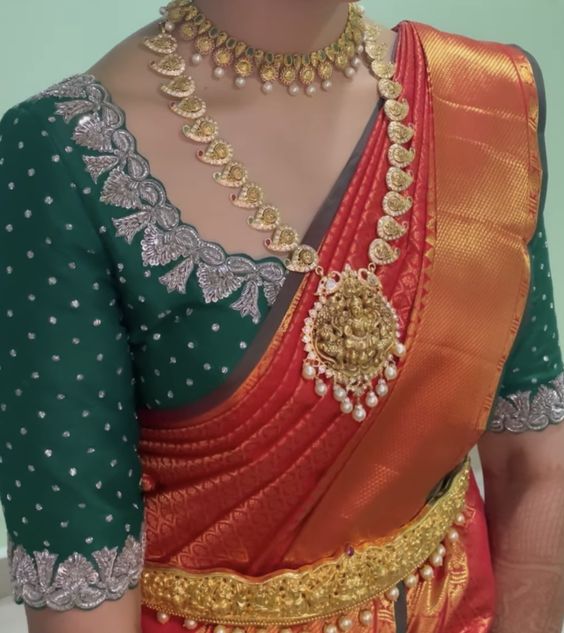 - Color / Design – Bottle Green Color Thread Stone Work Design