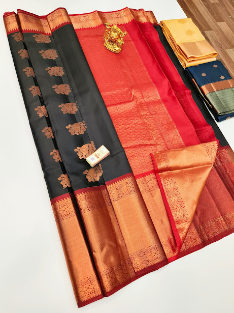 Unique Design Big Border Pure Soft Silk Saree Elephant and Red Color w/ Blouse