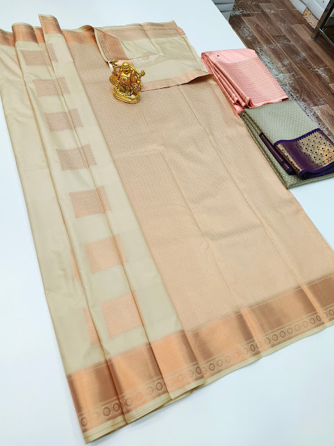 Unique Design High Fancy Kanjivaram Silk Saree Mix Cream Color w/ Blouse