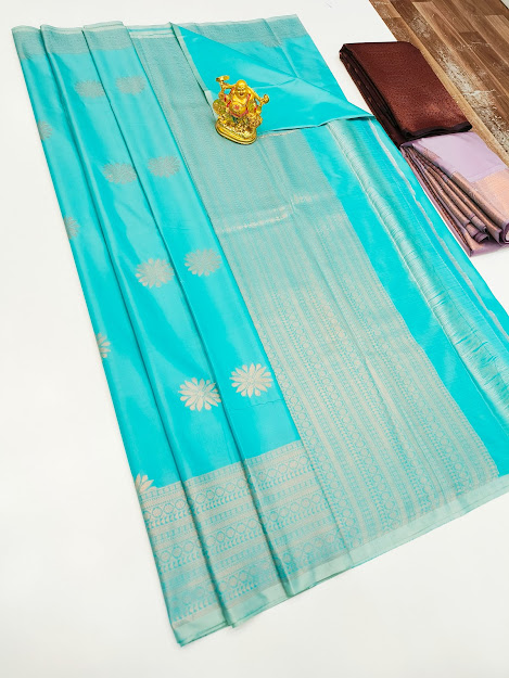 Unique Design High Fancy Kanjivaram Silk Saree Mix Rama Blue Color w/ Blouse