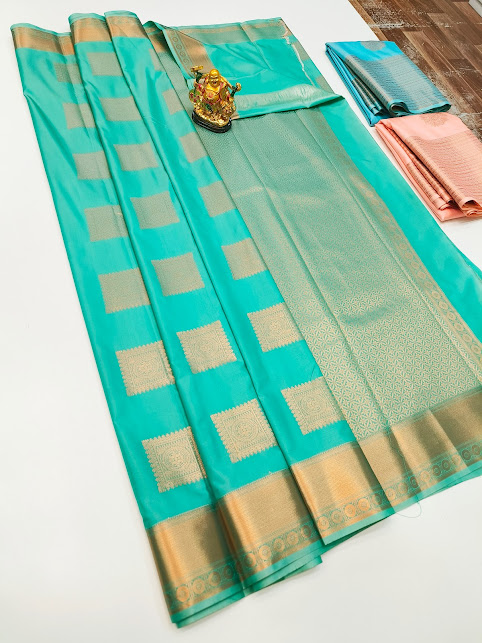 Unique Design High Fancy Kanjivaram Silk Saree Mix Teal Green Color w/ Blouse