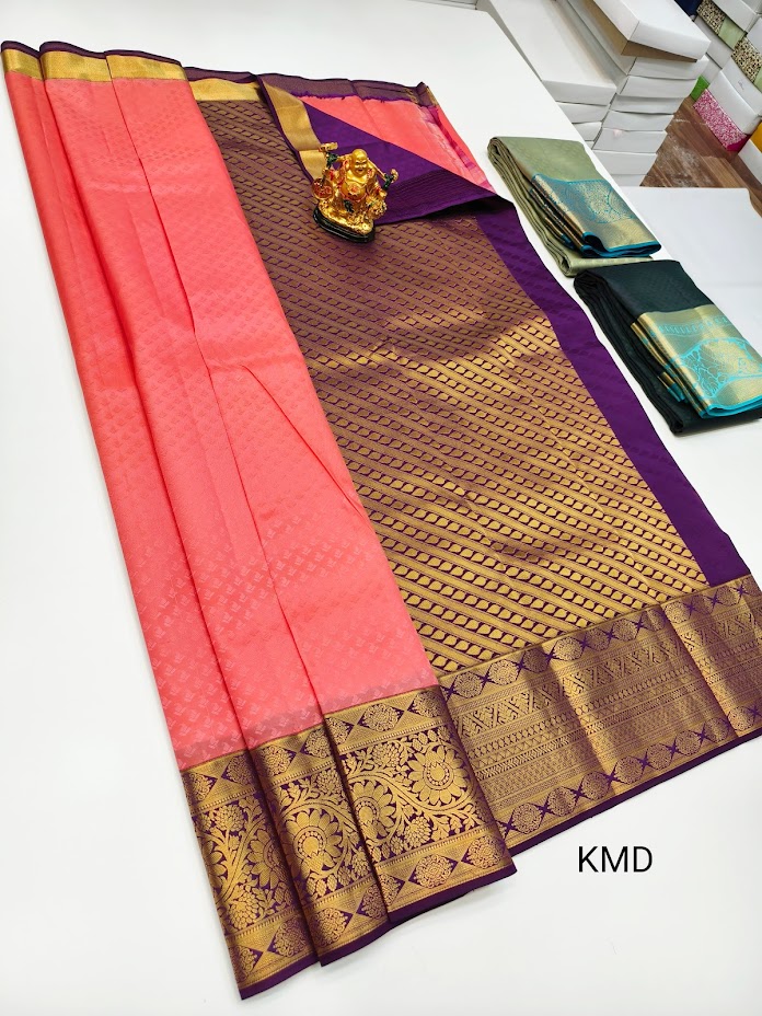 Unique Design K.M.D Soft 75% Pure Silk Saree Dark Peach Color w/ Blouse