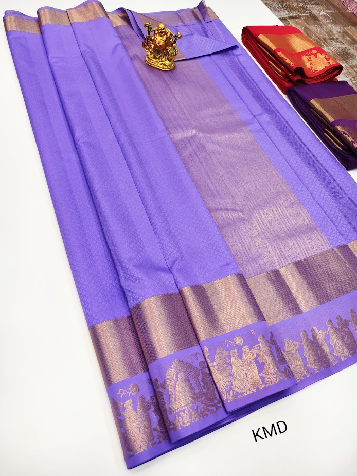 Unique Design K.M.D Soft 75% Pure Silk Saree Violet Color w/ Blouse