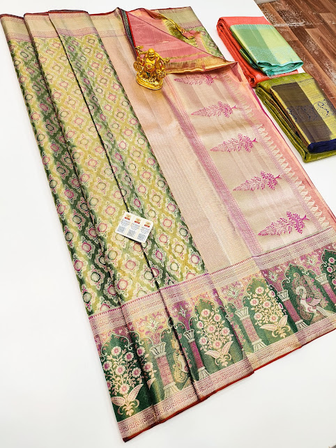 Unique Design Kanjivaram Pure Wedding Silk Saree Green Color w/ Blouse