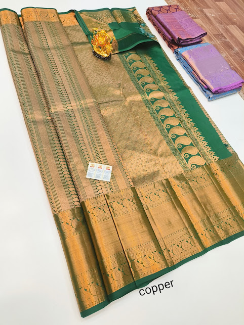 Unique Design Kanjivaram Pure Wedding Silk Saree Green Color w/ Blouse