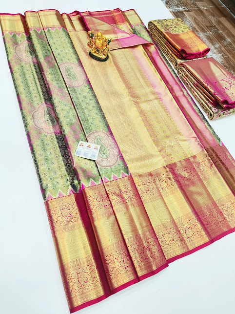 Unique Design Kanjivaram Pure Wedding Silk Saree Green Color w/ Blouse