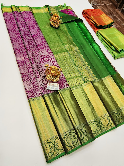 Unique Design Kanjivaram Pure Wedding Silk Saree Magenta Color w/ Blouse