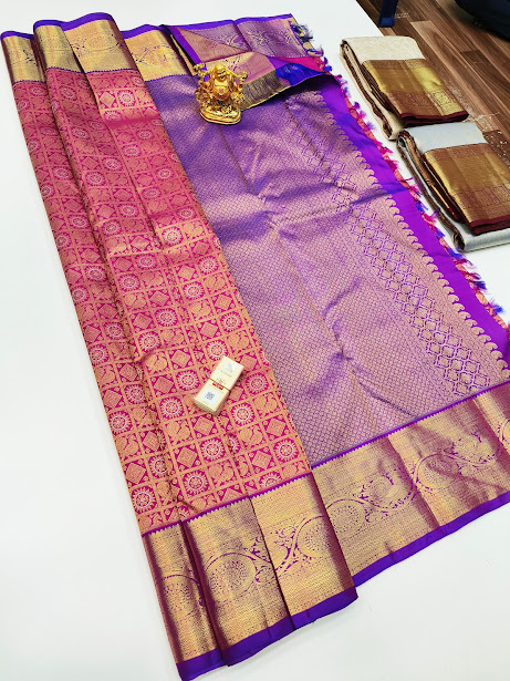 Unique Design Kanjivaram Pure Wedding Silk Saree Magenta Color w/ Blouse