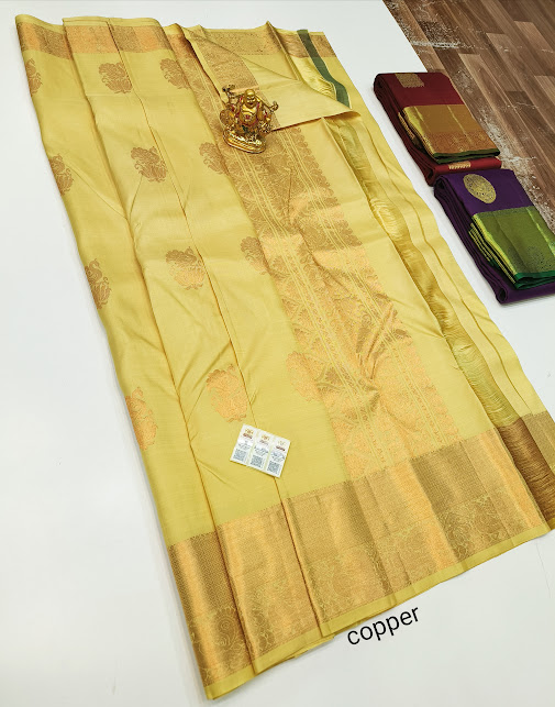 Unique Design Pure Kanjivaram fancy Silk Saree Butter Yellow Color w/ Blouse