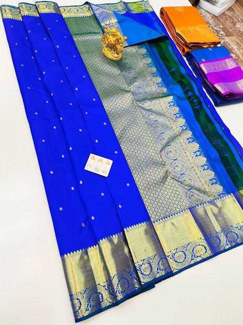 Unique Design Pure Kanjivaram Fancy Silk Saree Peacock Blue Color w/ Blouse