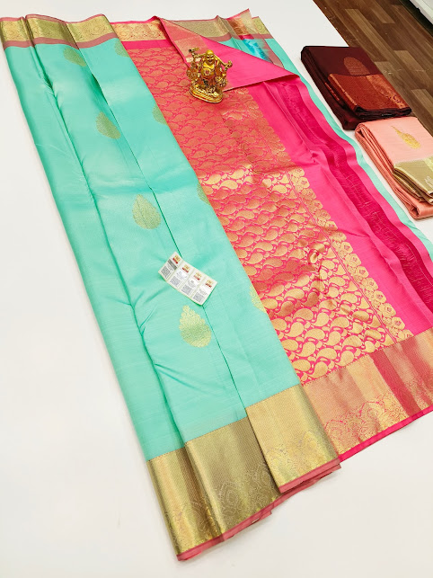 Unique Design Pure Kanjivaram Fancy Silk Saree Rama Blue Color w/ Blouse