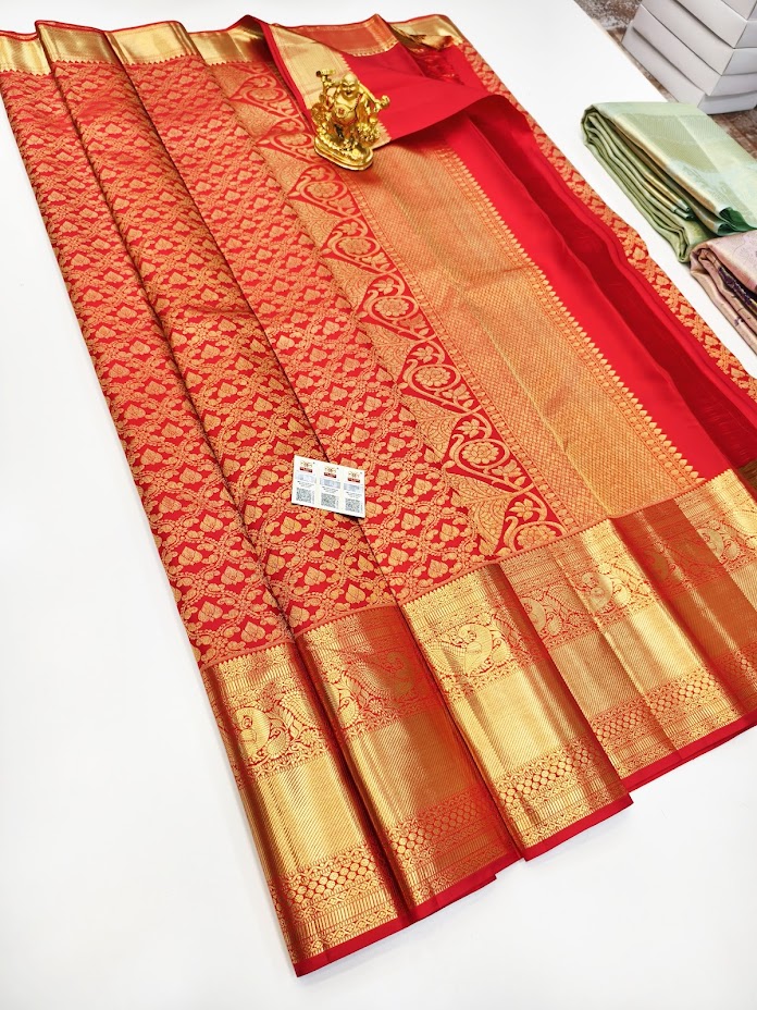 Unique Design Pure Kanjivaram Silk Saree Red Color w/ Blouse